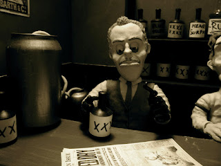 The Narrator and Dave observe a dead body. (The body is actually the nurse, I didn't include her in the film because the scenes with the narrator mostly take place at night, and it didn't make any sense to have her at his bedside at 3 in the morning, so she has a cameo role as a corpse instead.)
